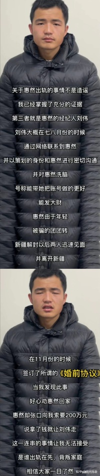 從他的回應(yīng)當(dāng)中,我們得知惠然口中精神出軌的對象是她的經(jīng)紀(jì)人。