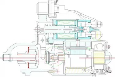 柴油機的啟動馬達,主要由傳動機構(gòu)、電磁開關和直流電動機等三部分組成。相關結(jié)構(gòu)見下圖。