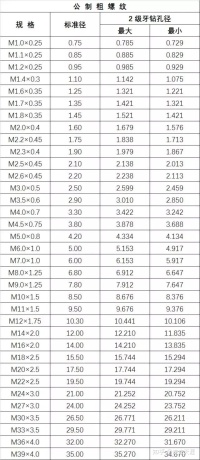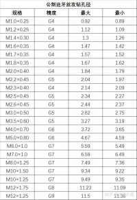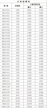 標(biāo)準(zhǔn)公制螺母攻牙要鉆個(gè)小于螺紋大徑的 孔來(lái)攻牙。這個(gè)孔的大小就是螺紋小徑到螺紋中徑。如何確認(rèn)孔徑大小就要參照對(duì)照表啦!